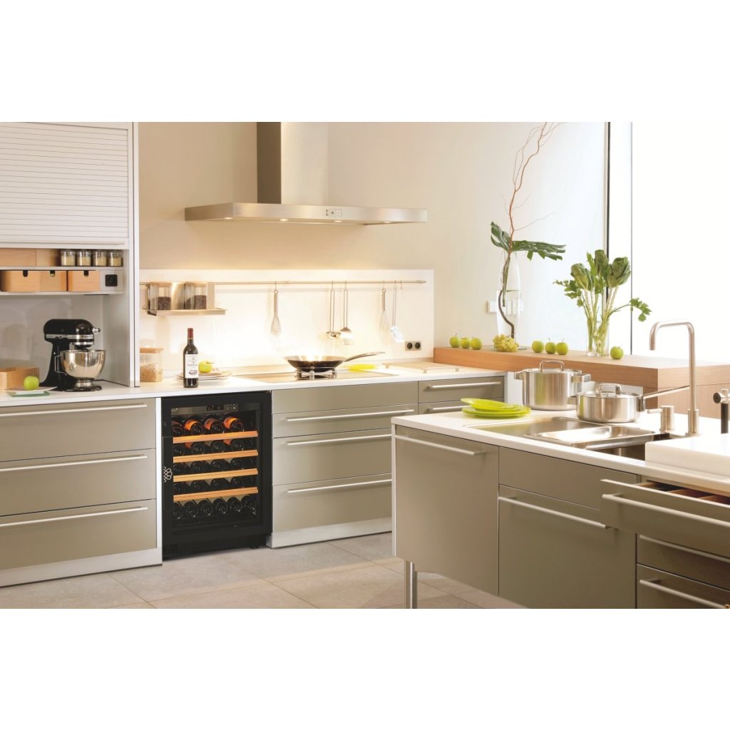 Compact se vejde pod pracovní desku a ladí s kuchyní. Ve větší verzi pojme až 167 lahví.